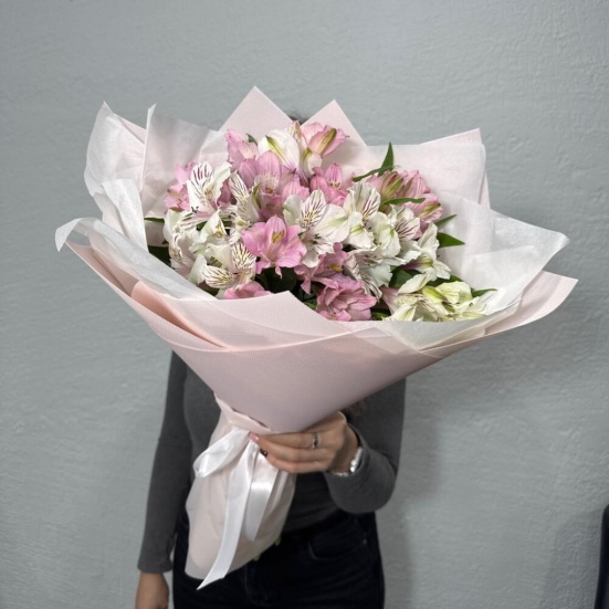 Букет из микс альстромерий белых и розовых