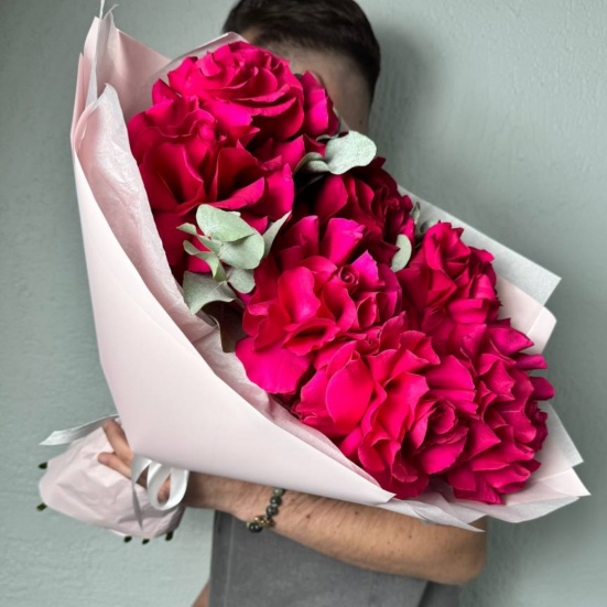 Букет из семи малиновых роз